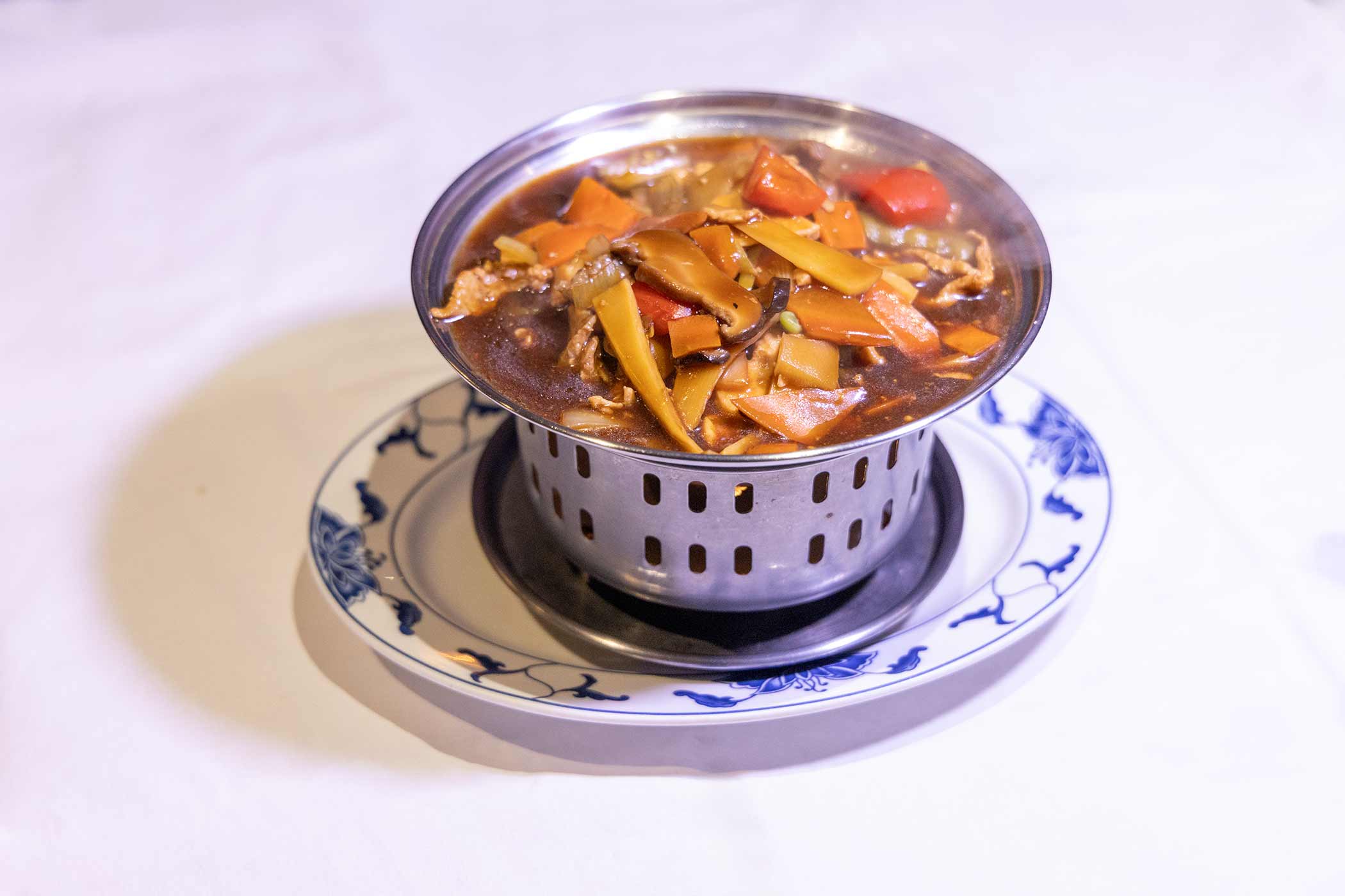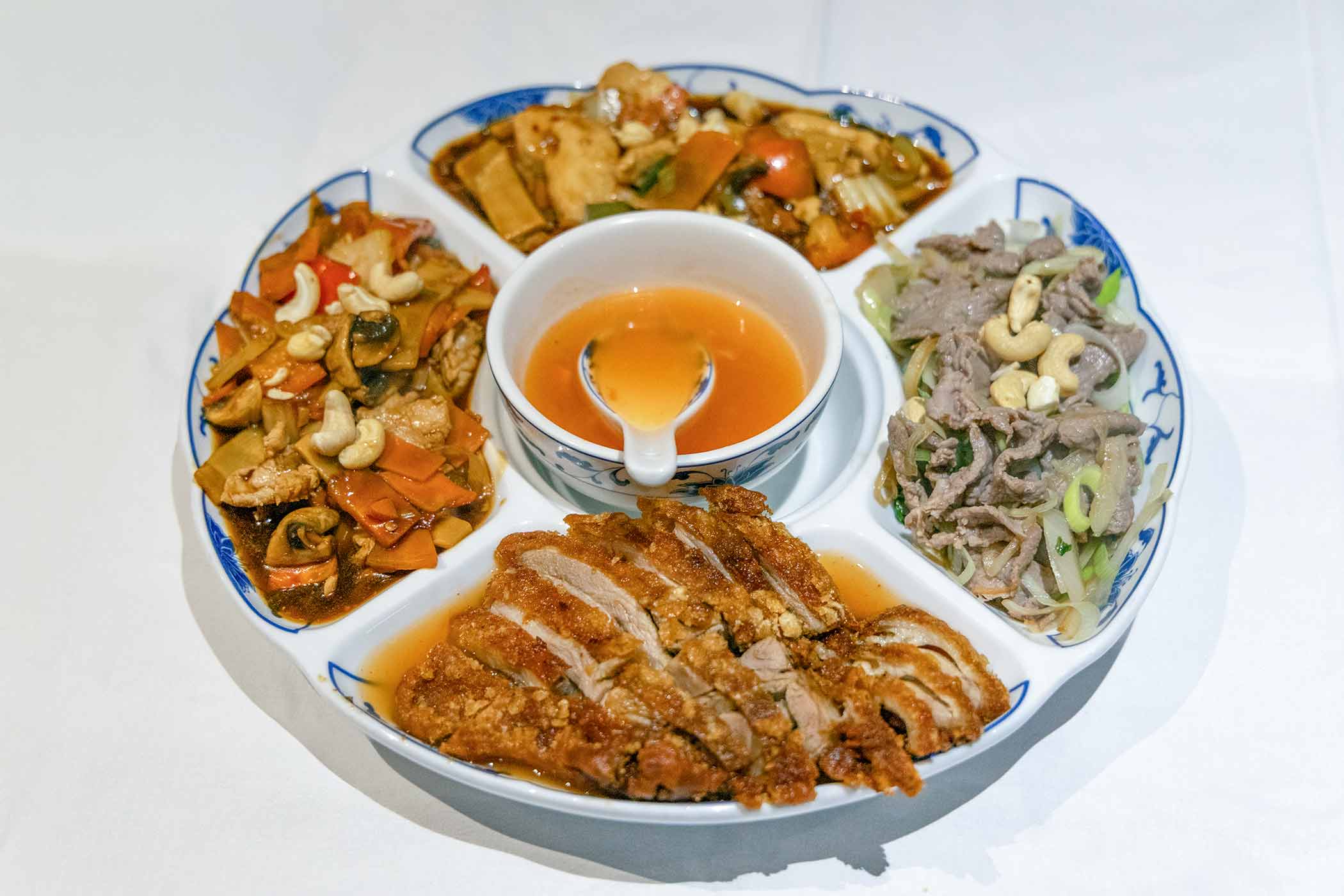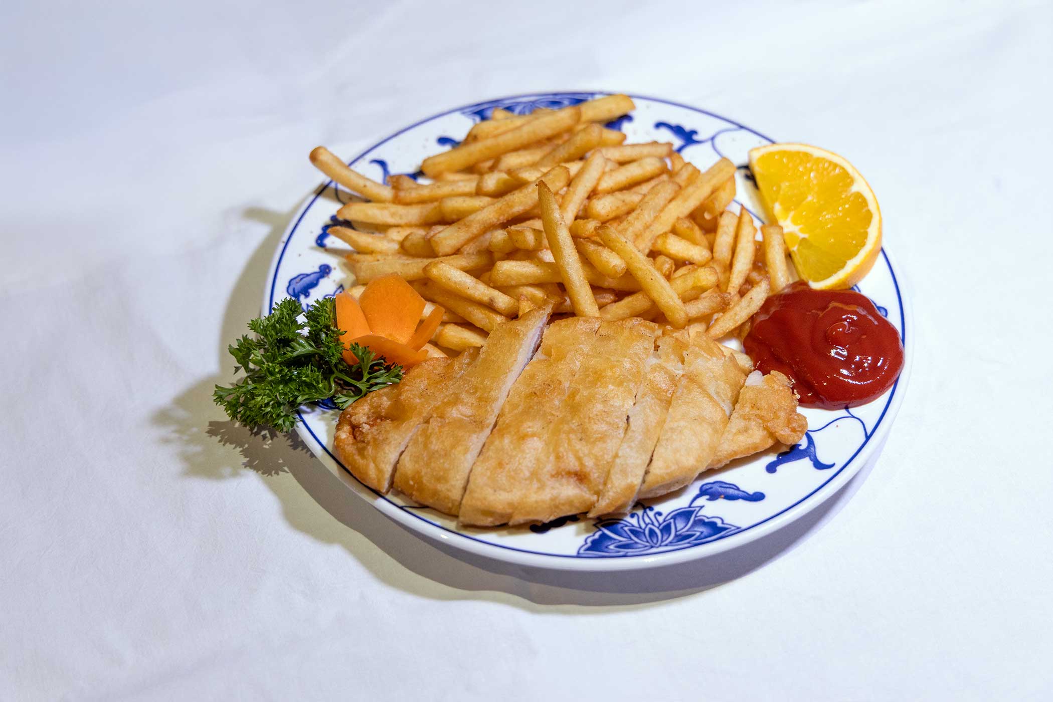 Pommes mit gebackenem HähnchenbrustfiletVietnamesische FrühlingsrolleFrühlingsrolleEntenfleisch kross gebacken süß-sauerGebackenes HähnchenfleischTofu gebratenGebratene Nudeln mit Eiern, HähnchenbrustfiletMenü für 2 Personen mit 4 verschiedenen FleischsortenFeuertopf mit Hähnchen, Schweinefleisch, Ente und Gemüse